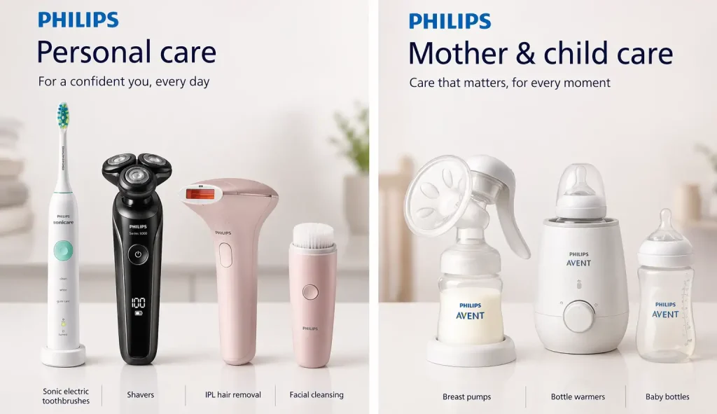 I dag beholder Royal Philips kontrollen over utviklingen av produkter innen personlig pleie samt produkter for mødre og barn. Disse produktene produseres imidlertid heller ikke direkte av Philips, men utvikles av selskapet og produseres av OEM-partnere.